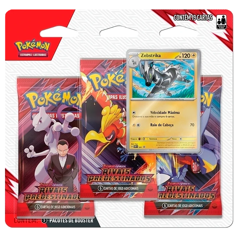 Blister Triplo Pokemon Zebstrika Escarlate e Violeta 10 Rivais Predestinados