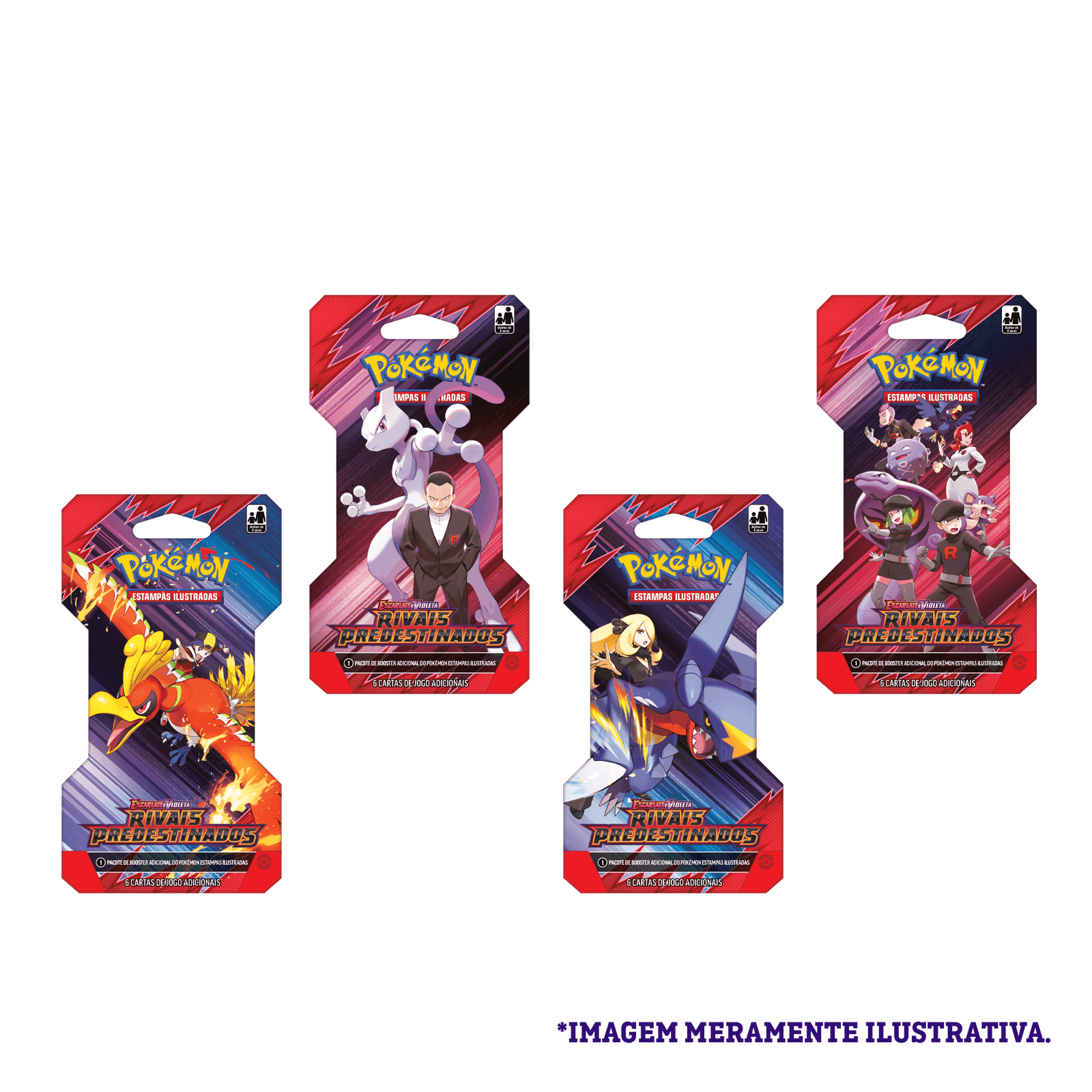 Treinadores de Pokémon, estado de alerta máximo! A nefasta Equipe Rocket está de volta pronta para colocar seu mais novo plano em ação, e Treinadores corajosos estão na corrida para detê-la. Junte-se a grandes nomes, como Cíntia e Garchomp ex, Ethan e Ho-Oh ex ou Arven e Mabosstiff ex... ou reveja os seus conceitos de lealdade e lute junto de Pokémon da Equipe Rocket, como Mewtwo ex, sob o comando de Giovanni! Escolha um lado, reúna seus aliados e entre com tudo na batalha na expansão Escarlate e Violeta — Rivais Predestinados do Pokémon Estampas Ilustradas!